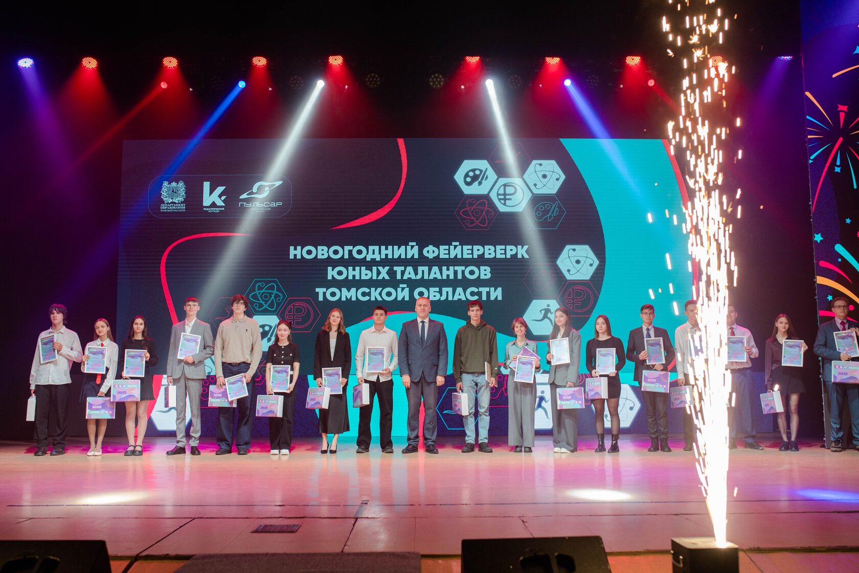Это церемония награждения ребят, которые добились успехов на международных и всероссийских олимпиадах, конкурсах и конференциях. Всего на мероприятие пригласили 563 школьника из Томской области. Из них 43 – кванторианцы и участники Национальной технологической олимпиады. Все они получили почётное звание «Юное дарование Томской области».