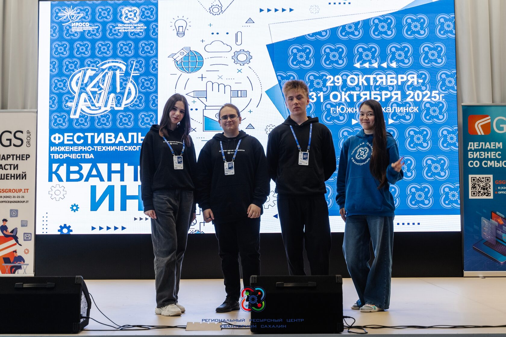 Другая команда кванторианцев – Людмила Пантюхина, Всеволод Богдан и Денис Лисовский приняли участие в Фестивале Инженерно-технического творчества «КВАНТ-ИН»-2025 в Южно-Сахалинске. Ребята соревновались в направлении Медиа.